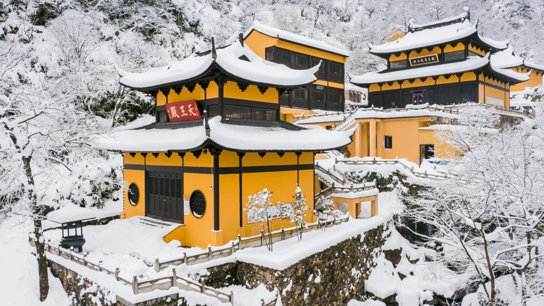 飞雪迎春到,浙江佛寺银装素裹(