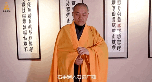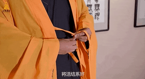 右边衣衫上有条带子,掀开左边衣襟,即可看到内侧有另一条带子,将活结系好