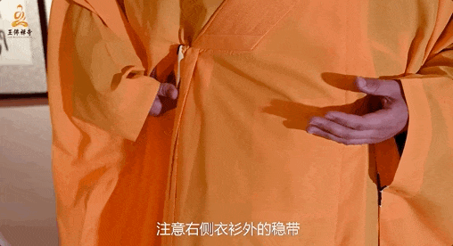 注意右侧衣衫外的稳带,切不可打结,必须让它自然垂下