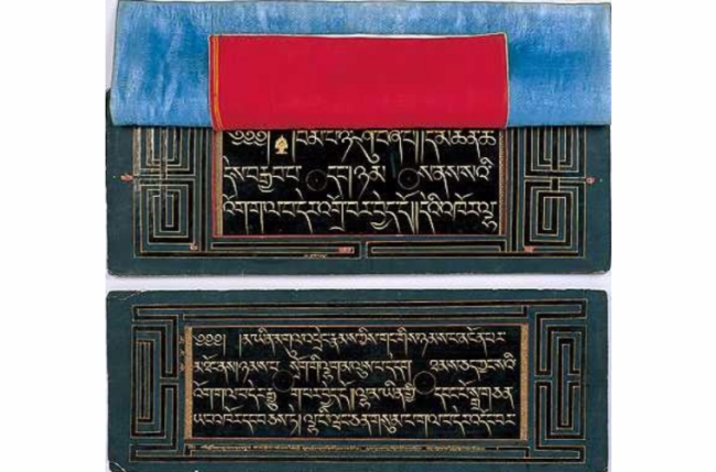 此经的藏文译本,系由印度胜友、天王菩提和中国西藏智军共从梵文译出,并由遍照护加以复校,成一百十五卷(奈塘目录作一百三十卷,德格目录作一百一十六卷,实为一百一十五卷),内分四十五品,前四十四品相当于唐译本前三十八品,第四十五品当于唐译本第三十九《入法界品》,又藏译本比汉译本多出第十一品和第三十二品,其他各品文句上也颇有出入。
