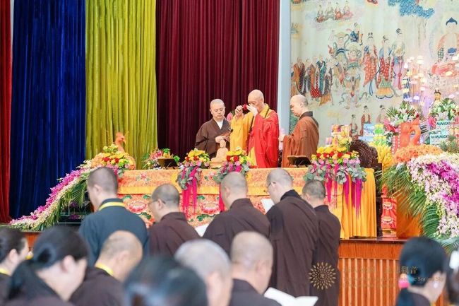 2025年9月28日(乙巳年八月初七),“佛法僧三宝,众生良福田,若能持净戒,利乐诸人天”,普陀山佛教协会乙巳年秋传授三皈五戒法会圆满。法会礼请中国佛教协会副会长、普陀山佛教协会会长、普济禅寺方丈上道下慈大和尚担任三皈五戒本师,古草茅篷负责人礼贤法师担任五戒羯磨阿阇黎,普陀山佛教协会弘法办副主任、白华禅院监院宏海法师担任五戒教授阿阇黎。来自全国各地约二百位善信檀越在会长道慈大和尚的引导下,至心皈依三宝,发愿受持五戒,正式成为三宝弟子,法会现场清净庄严。