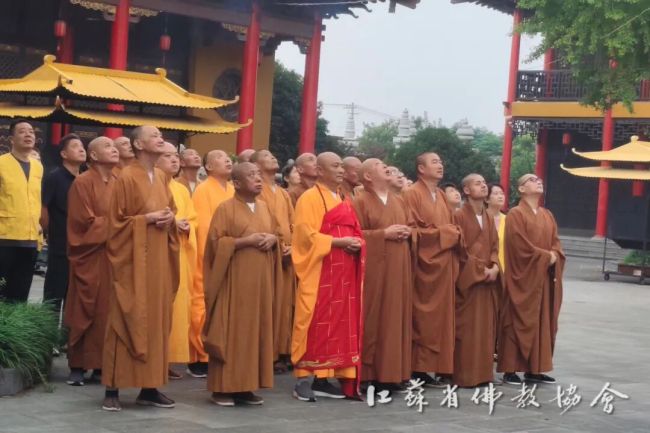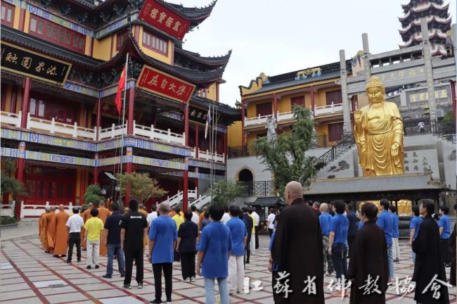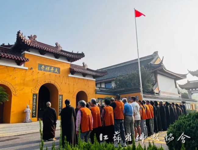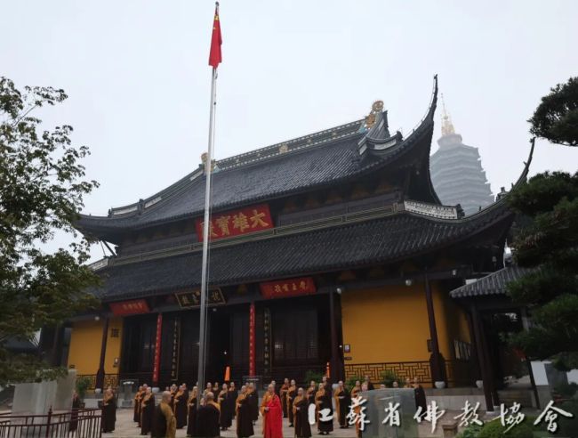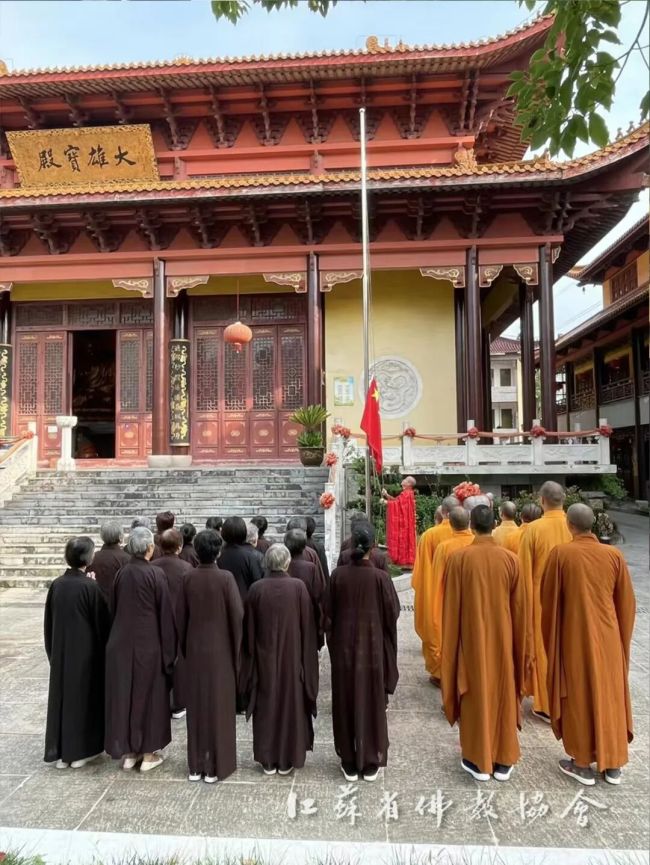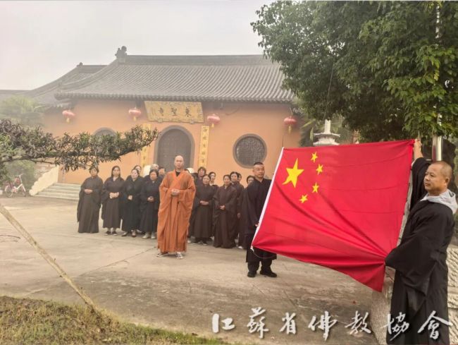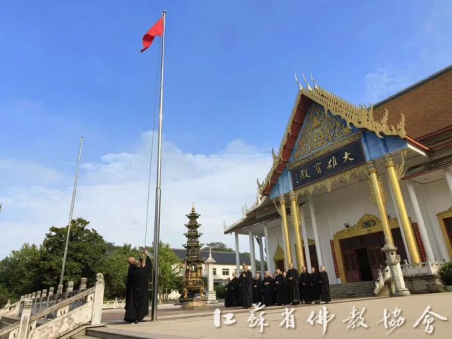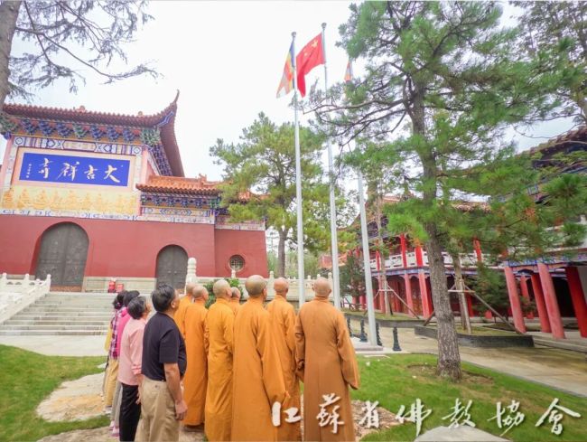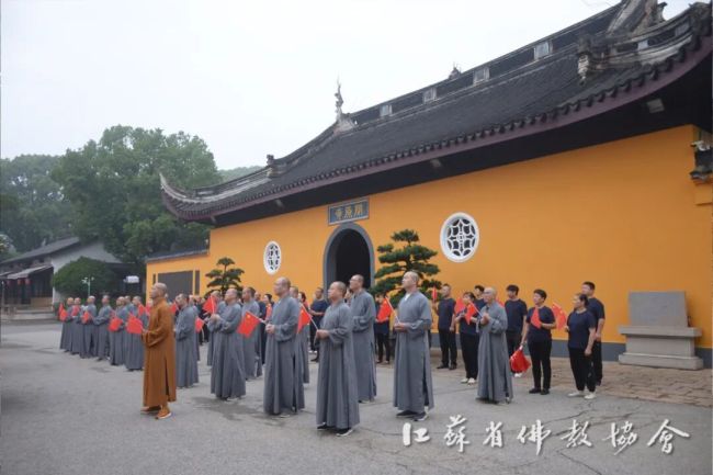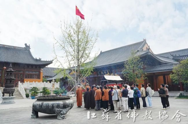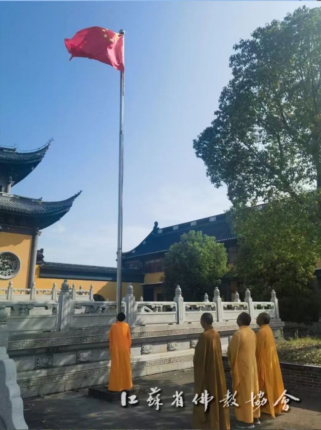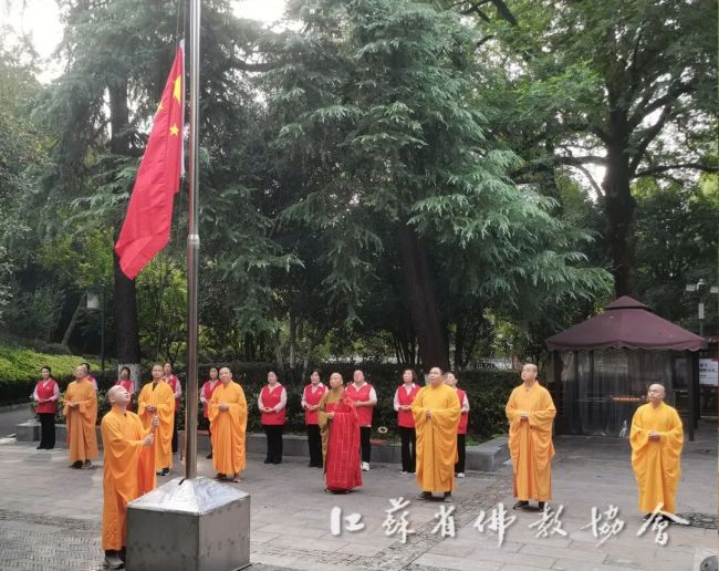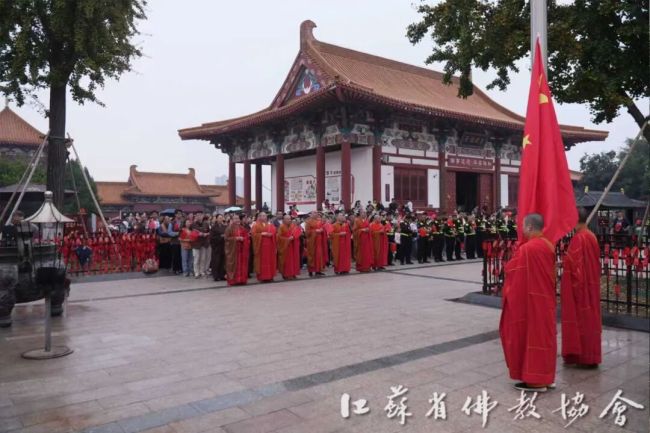 通过升国旗仪式,进一步增强全省四众弟子的民族自豪感和国家荣誉感,弘扬伟大的爱国主义精神。江苏佛教界将始终坚持推进佛教中国化实践走深走实,深入推进文化润教,弘扬中华优秀传统文化,为实现中华民族伟大复兴贡献智慧和力量。