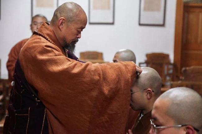 明海大和尚评价师父过的是天人的生活。师父有句话:早起三光,晚起三慌。每次开法会的时候,前一天,师父总吩咐我几点叫他起床,可每次都是等到我起来去叫他的时候,师父早已经搭好衣在等我们了,威仪具足,他还烧好了水,泡好了茶,告诉我们:喝杯茶。师父总是等别人,而不让别人等他。师父生活非常有条理,每一件东西放在哪里都是知道的,非常有条理。师父的所有衣服,洗干净晾晒的时候,都是细心地用手抻展,衣服一点褶儿没有,根本不用熨烫,细心之至。师父住的地方,总是那么干净整洁,不染尘埃,而且,都是师父自己动手收拾的。师父心思细密,房间里哪个开关开哪个灯要记住,我们如果不记得,把每个开关都开一遍,师父是会说的。2010年,我在师父座下剃度。师父亲自为我落发,我跟着师父一句一句地读:愿断一切恶,愿修一切善,愿度一切众生。师父诵:金刀剃下娘生发,除却尘劳不净身,圆领方袍僧相现,法王座下又添孙。一句一句,直通心灵,我的眼泪不由自主地落下来,洗却前尘,再世为人。刚出家的时候,有一个时期觉得有些烦恼自己还无法化解,想去住山,那次我都坐上火车到了衡水,师父派明憨大和尚去衡水接我回来。那天上午,在师父的房间里,师父推心置腹地和我聊了一上午。师父深情对我讲了他所经历的磨难,遭遇“云门事变”,饱受惊惶困顿;被划为右派,长达六年的农场劳动改造;被迫回乡务农……等等所遭受的苦难,师父告诉我,天将降大任于斯人,必先苦其心志,劳其筋骨。从那以后我更加坚定了道心,努力调伏内心,面对烦恼,迎难而上。也慢慢学习师父的包容宽厚。师父的身体力行,师父的人天师表,坚定了我求法的道心。我出家后不久就是农历的二月二,那一天的凌晨12点,知道杨勋居士深夜二点要来,师父要去迎接,说要早点睡,其实就算是立刻就睡也只能睡两个小时。凌晨一点半的时候师父就搭好衣来敲我们的门,其实师父根本就没睡。我们还在熟睡,当时我们感觉特别惭愧。“崇朗,想出家?出家就是累,你这是活该,这是你自己选的路。”我只是觉得师父是在鞭策我,是在告诉我这是一种责任感。