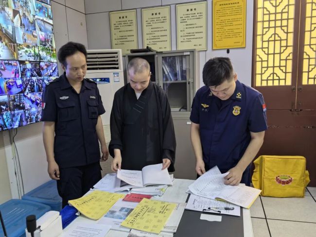 检查组对各场所殿堂、厨房(斋堂)、宿舍、在建工程、消防通道、电器线路、用电设备、消防器材等重点区域和设施进行全面检查。在消防安全方面,检查组重点查看了各场所消防器材是否配备齐全、能否正常使用,消防通道是否畅通无阻。针对用火用电安全,检查人员细致排查了明火管理、电气线路、大功率电器使用等情况和是否存在违规放置电动自行车、飞线充电等隐患。检查组还查看了各场所疏散通道畅通情况和应急疏散预案制定情况。针对检查过程中发现的问题,检查组现场提出了整改意见,明确整改时限与责任人,建立台账动态跟踪,确保安全闭环管理。