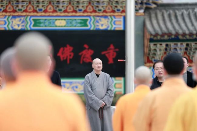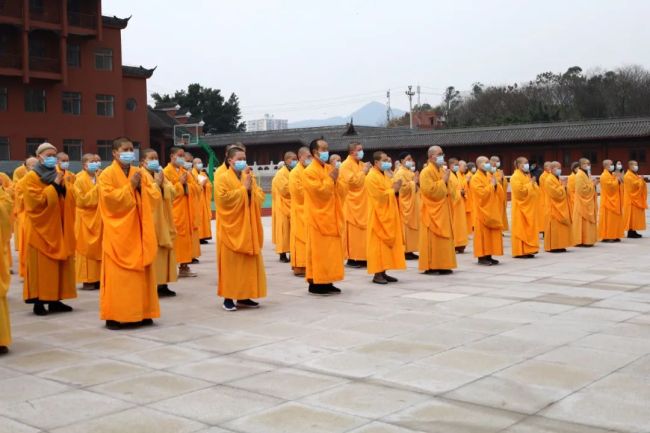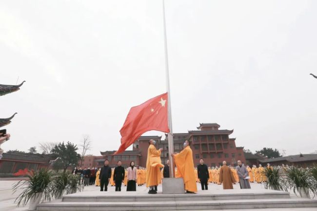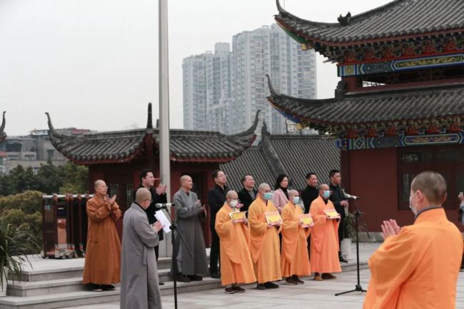 2月28日上午,重庆佛学院举行2021-2022学年第二学期开学典礼暨升国旗仪式,学院副院长兼教务长正澄法师主持,市委统战部、市民族宗教委、市佛教协会、九龙坡区民族宗教委相关处室负责人出席典礼,全体师生、教职员工100余人参加。