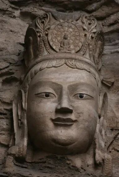 在云冈石窟的造像艺术中,有一抹“月亮” 格外引人注目 —— 它不是悬于洞窟穹顶的星空意象,而是镶嵌在菩萨宝冠上,形象化称呼仰月装饰。