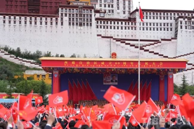 图为西藏自治区成立60周年庆祝大会现场 摄影:边子捷